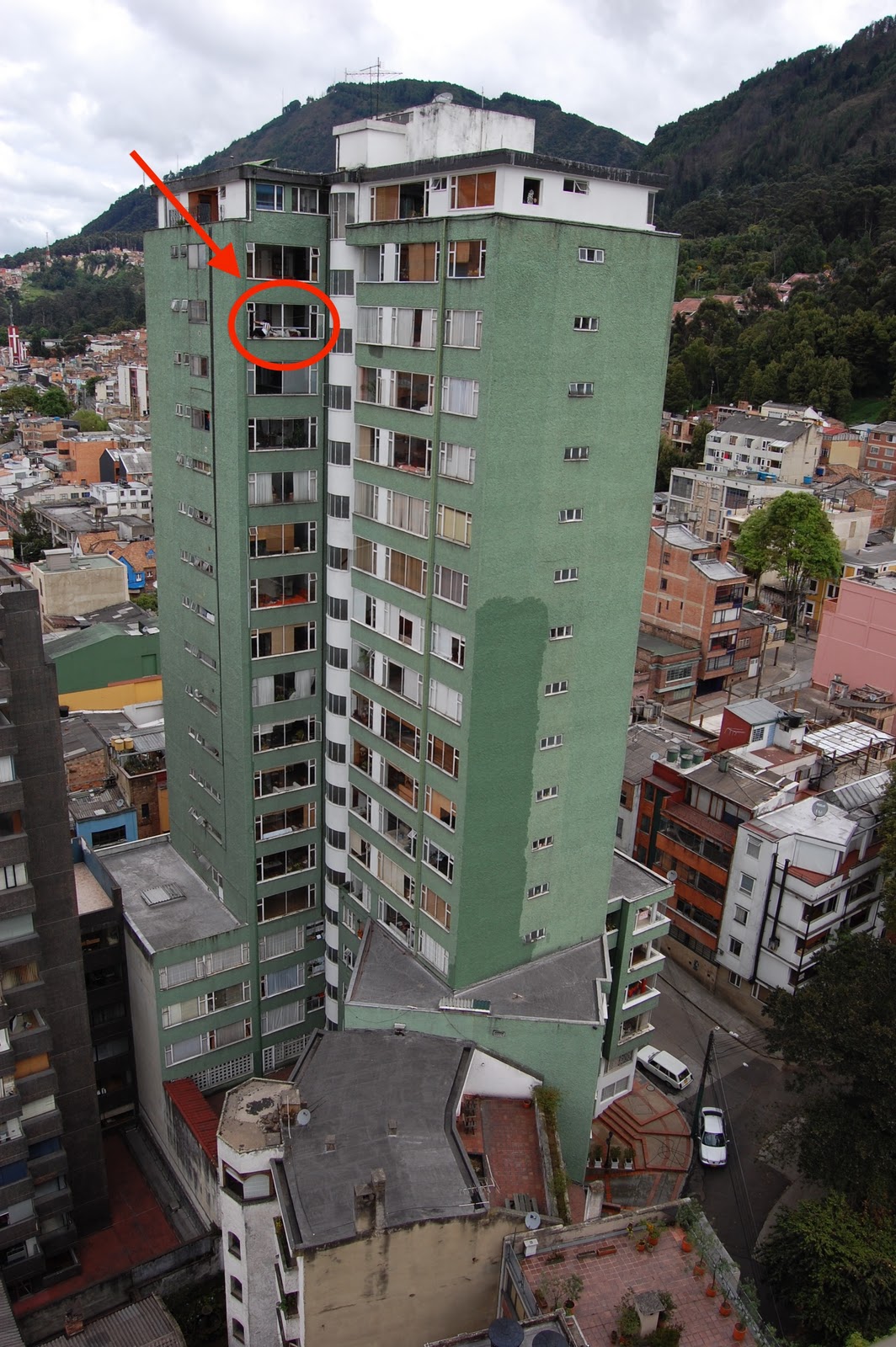 ein großes Hochhaus und er (ist ja Profi) seilt sich ab und schaut dann einfach durch wohzimmerfenster