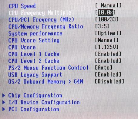Im BIOS habe ich Vcore auf 1,125Volt eingestellt und FSB 133Mhz x 7,5 verwendet (MoBo Hardware Rev. 2.0, BIOS Rev 1018-Beta).